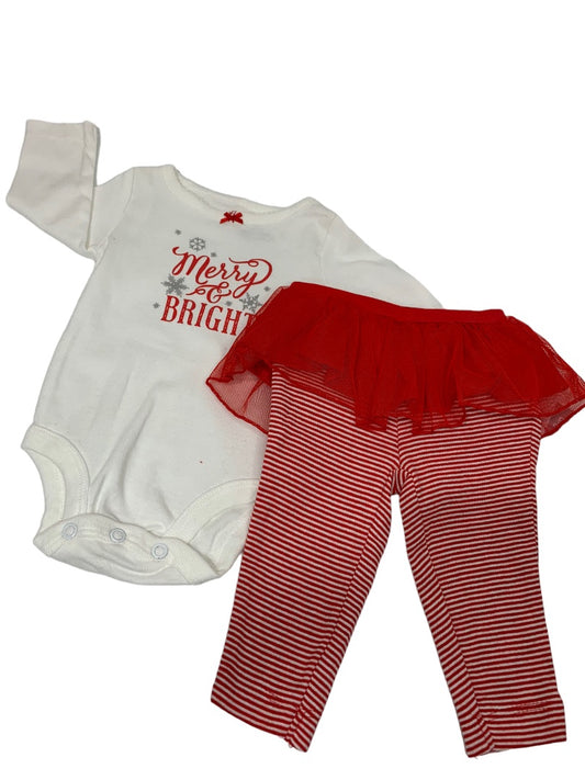 3 Months Carters Girls Two Piece Holiday Outfit New "Merry & Bright" Tutu