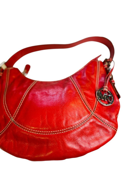 Michael Kors Red Leather Large Hobo Bag Contrast Stitch Shoulderbag