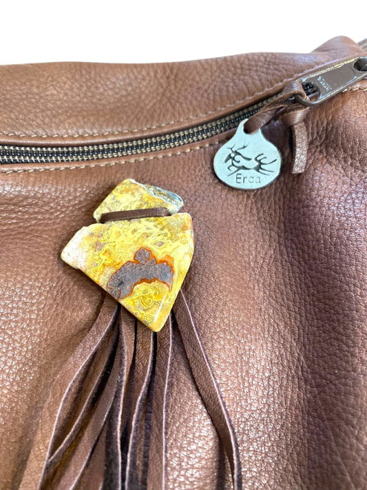 Erda of Maine Brown Leather Crossbody Boho Fringe Stone Festival Bag