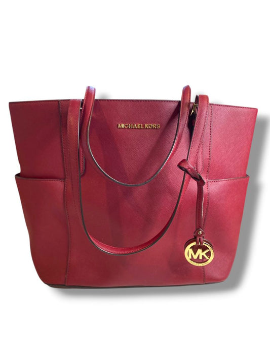 Michael Kors Jet Set Tote Handbag Dark Cherry Saffiano Leather Large