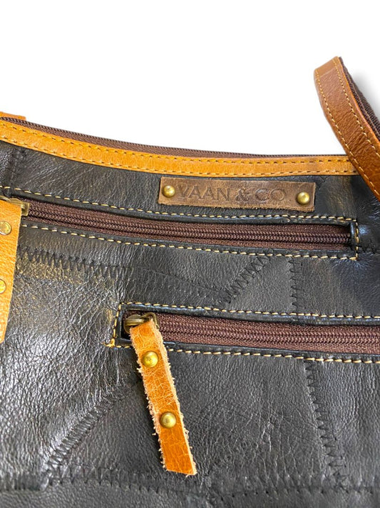 Vaan & Co Crossbody Bag RFID Protection Made with Leather Scraps Long Strap 32"