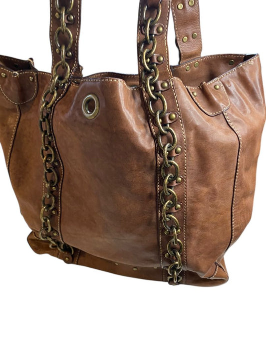 J.Crew Brown Leather Tote Handbag Chain Detail Boho Retro Style