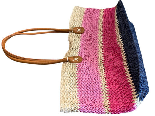 Shiraleah Chicago Straw Snap Closure Tote Bag Striped Pink Navy 15"l x 12"h