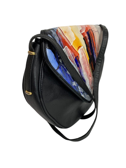 Brushstrokes Painted Flap Black Leather Bag Shoulderbag Purse 1990s