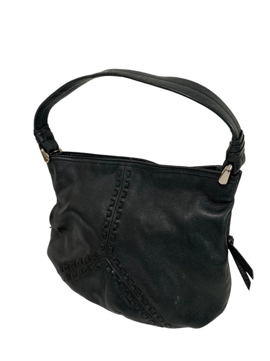 B Makowsky Black Pebbled Leather Shoulderbag Side Zip Pockets