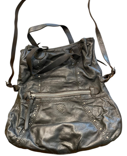 Lucky Brand Lambskin Foldover Crossbody Handbag Charcoal Gray