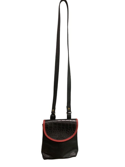 Vintage 1990s Black Red Leather Flap Satchel Hip Bag