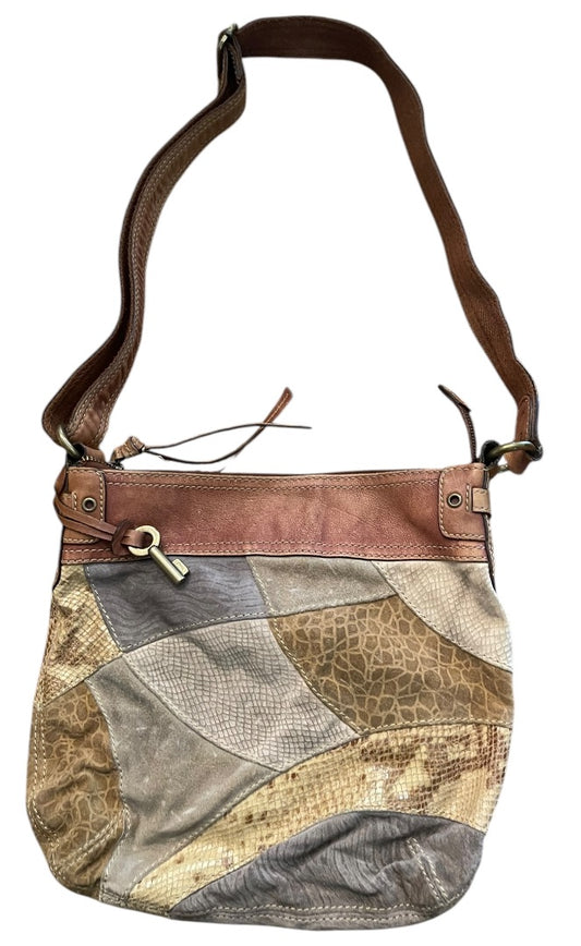 Fossil Leather Suede Purse Boho Patchwork Crossbody Shoulderbag