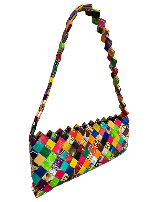 Candy Wrapper Woven Upcycle Purse Shoulderbag Zip Top Colorful