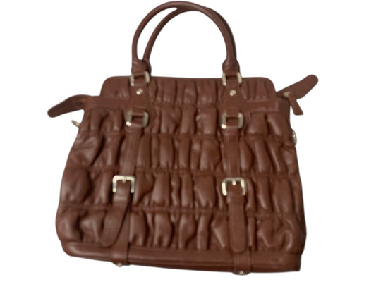 Vintage 1990s Brown Faux Leather Satchel Tote Handbag Silvertone Hardware