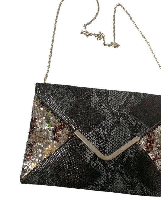 Y2K Convertible Envelop Clutch Shoulderbag Faux Snakeskin Sequin