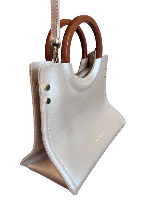 Laura Ashley Matte Gold Shoulder Bag Purse Wooden Handle Adjustable