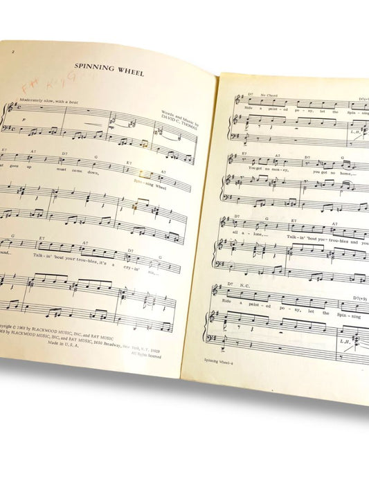 Blood Sweat & Tears Spinning Wheel 1969 Hit Song Vintage Sheet Music 60s Pop Art
