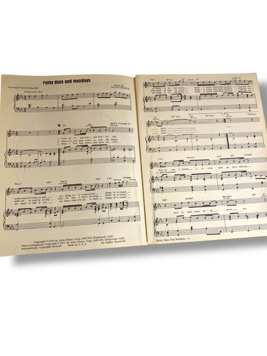 1971 Rainy Days and Mondays Sheet Music Carpenters Paul Williams Roger Nichols