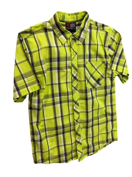 Large (16-18) South Pole Boys Youth Short Sleeve Neon Plaid Button Up Shirt