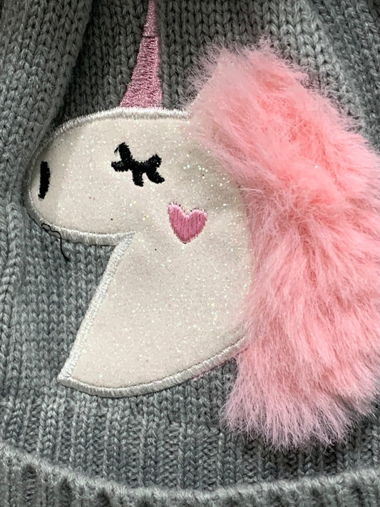 4-6X Emma & Elsa Girls Sweater Knit Hat Unicorn Pompom
