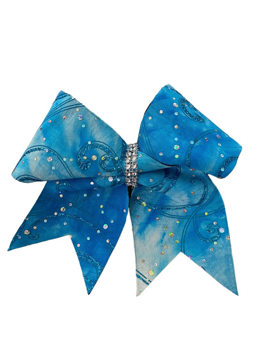 Girls Oversize Hair Bow 6.5" Elastic Ponytail Holder Blue Glitter Bejeweled
