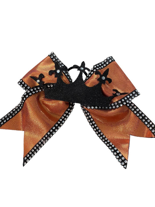 Girls Oversize Hair Bow 6.5" Elastic Ponytail Holder Shiny Orange Black Crown