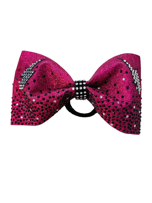 Girls Oversize Hair Bow 6.5" Elastic Ponytail Holder Glitter Hot Pink Lightning Bolt