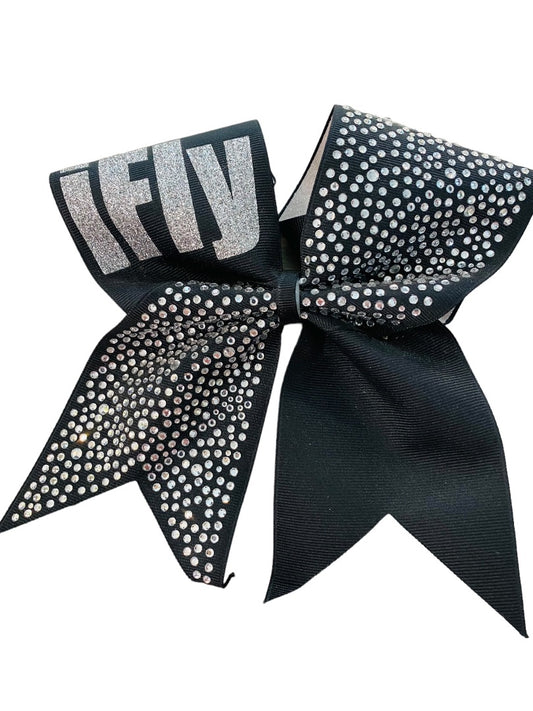 Girls Oversize Hair Bow 6.5" Elastic Ponytail Holder "iFly" Black Silver Bejeweled