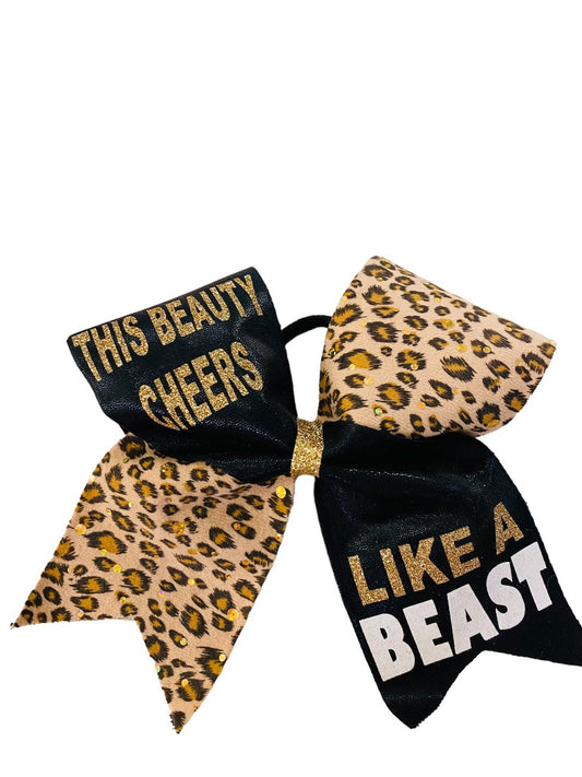 Girls Oversize Hair Bow 6.5" Elastic Ponytail Holder "This Beauty Cheers Like a Beast"