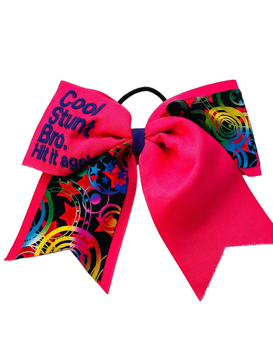 Girls Oversize Hair Bow 6.5" Elastic Ponytail Holder Hot Pink "Cool Stunt Bro"