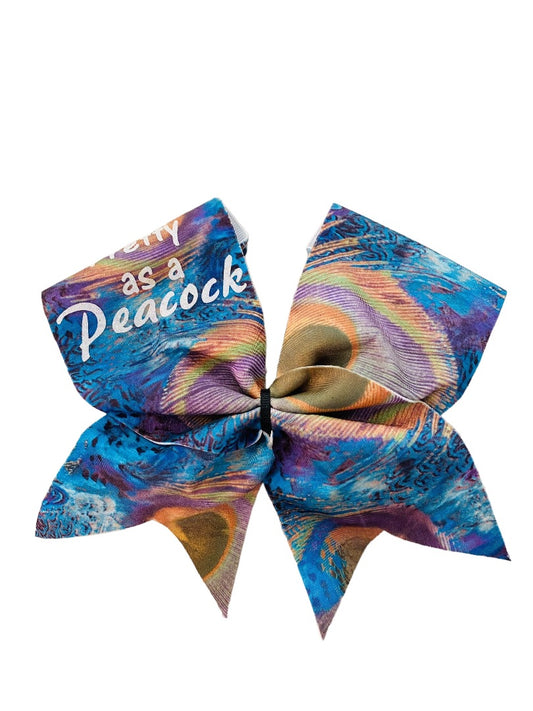 Girls Oversize Hair Bow 6.5" Elastic Ponytail Holder "Pretty as a Peacock" Multicolor