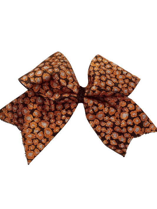 Girls Oversize Hair Bow 7.5" Elastic Ponytail Black Orange Silver Animal Print Glittery