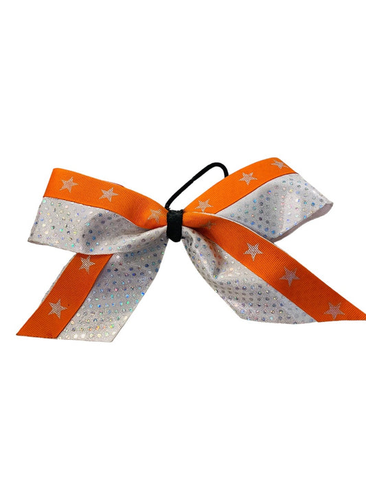Girls Oversize Hair Bow 8" Elastic Ponytail Silver Orange Star Print