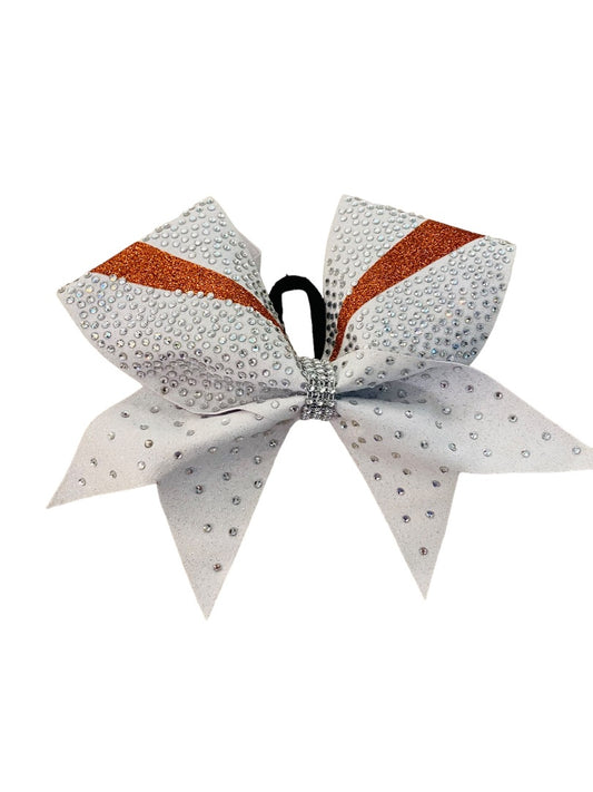 Girls Oversize Hair Bow 7" Elastic Ponytail Holder White Orange Bejeweled
