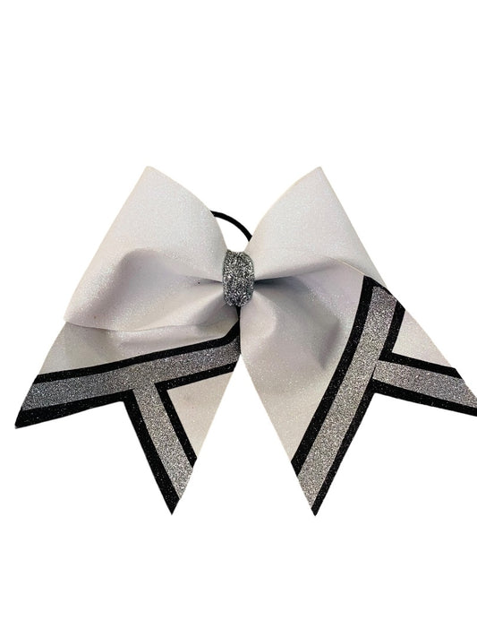 Girls Oversize Hair Bow 8" Elastic Ponytail Holder White Black Glitter