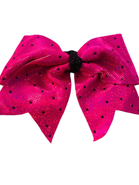 Girls Oversize Hair Bow 6.5" Elastic Ponytail Hot Pink Black Dots Gilttery Shiny