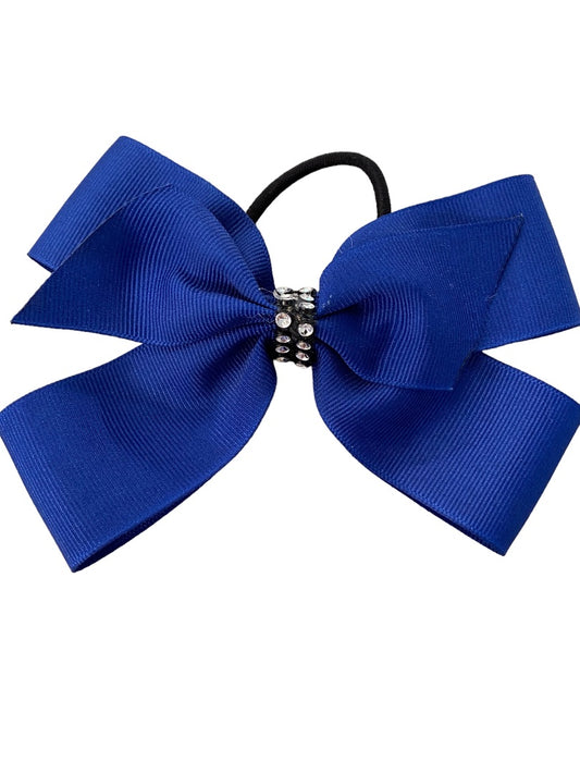 Girls Oversize Hair Bow 5" Elastic Ponytail Blue Bejeweled