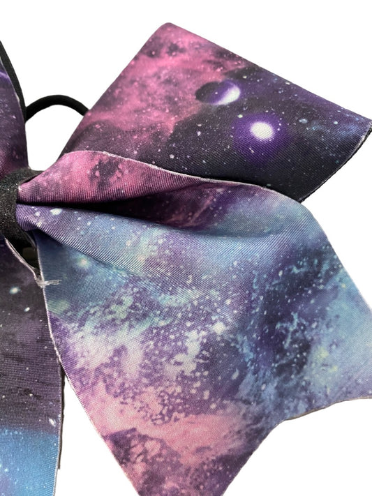 Girls Oversize Hair Bow 6" Elastic Ponytail Galaxy Print Blue Pink Purple
