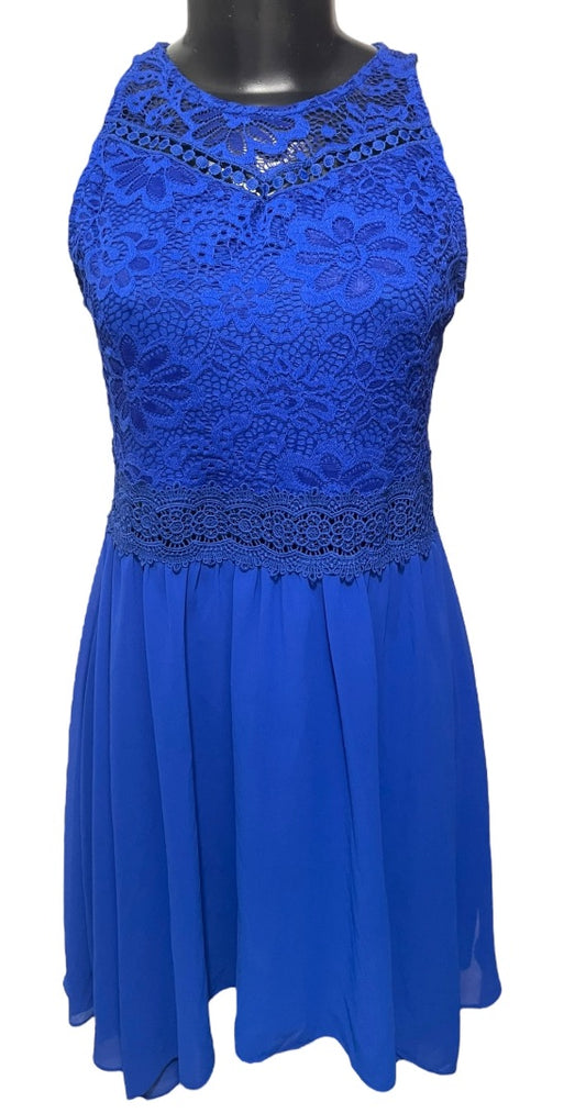 Size 16 Amy Byer Girls Royal Blue A-Line Dress Lace Bodice Sleeveless