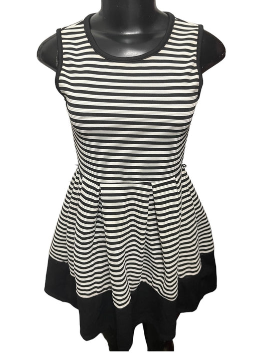 Size 12 Beautees Girls Black White Stripe Fit and Flare Dress Sleeveless