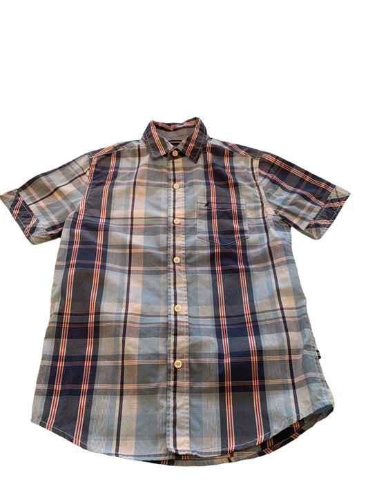 Medium (10/12) Nautica Boys Light Blue Plaid Short Sleeve Button Up