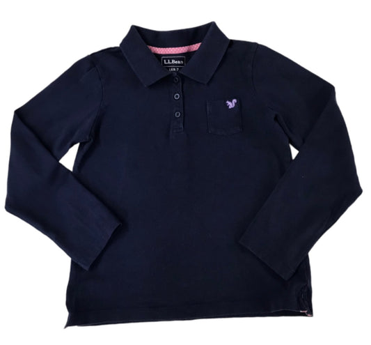 6X/7 L.L.Bean Girls Navy Blue Long Sleeve Single Pocket Polo Shirt
