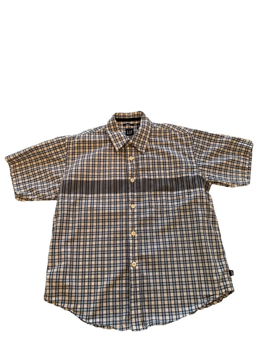 Medium (7/8) Gap Boys Blue Plaid Short Sleeve Button Down Shirt