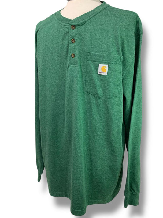 Size XL Carhartt Mens Green Loose Fit Henley Shirt Single Pocket