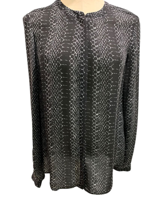 Medium Joie Womens Silk Reptile Print Black Button Up Blouse Shirt