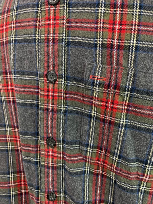 Size Large Eddie Bauer Mens Gray Red Plaid Flannel Button Up Shirt