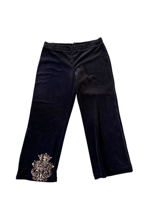 Size Large Style & Co Womens Black Velour Gold Embellished Pants Pull On