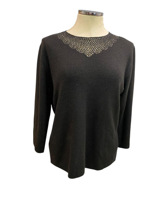 Size XL Amanda Smith Black Beaded Neckline Soft Womens Sweater