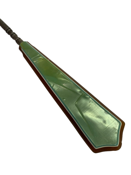 Vintage Enamel Button Hook Antique Boot Glove Fastener Green Handle