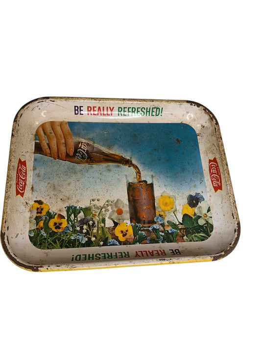 Vintage 1961 Coca Cola "Be Really Refreshed" Pansy Flower Metal Serving Tray