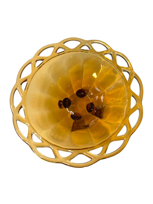 Pitman Dreitzer Lancaster Colony 1960s Amber Three Footed Glass Bowl 7.5"