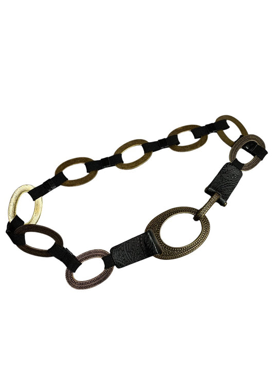 One Size Womens Brass and Tooled Leather Womens Link Stretch Belt