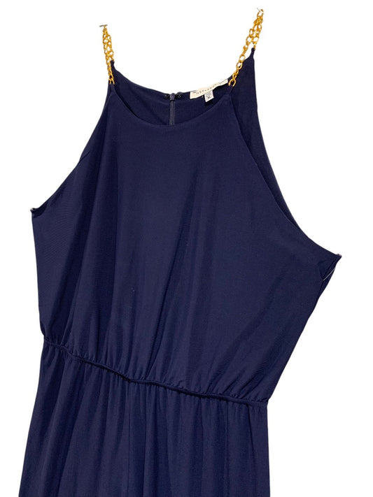 XL Tash + Sophie Womens New Navy Blue Stretch Jumpsuit Goldtone Chain