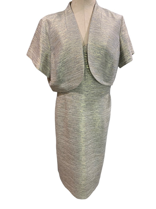 Size 18W Jones New York Sheath Dress and Jacket Gold and Gray Metallic Lined
